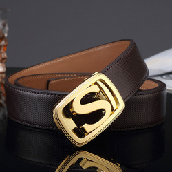 男性用3.5cm幅Sレターバックル自動ベルト、男性用カスタムベルト